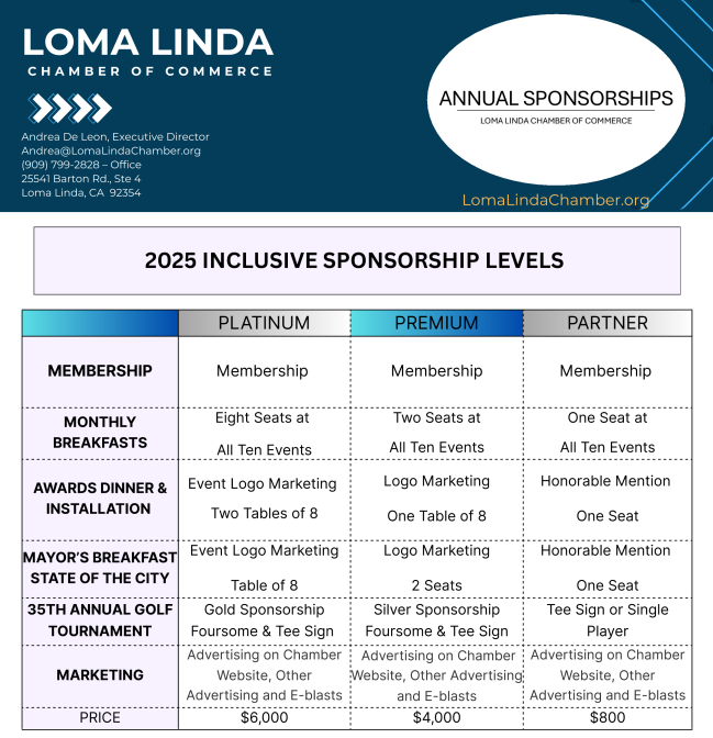 Email the Chamber for more information: Andrea@LomaLindaChamber.org